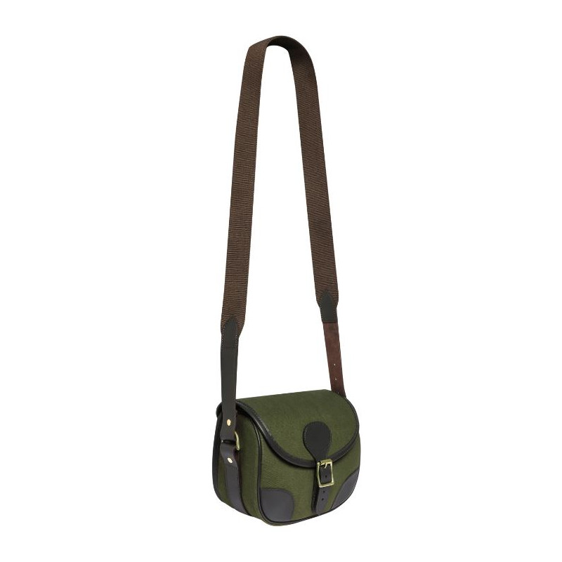 Borsa a tracolla portacartucce Beretta verde con inserti in pelle modello Terrain art. BS712T252107QY. Borsa porta cartucce realizzata in canvas di cotone ed inserti in vera pelle con chiusura a patta. Catana da caccia con accessori, fibbie e rivetti realizzati in ottone. Questa borsa da caccia può contenere fino a 100 cartucce in calibro 12.