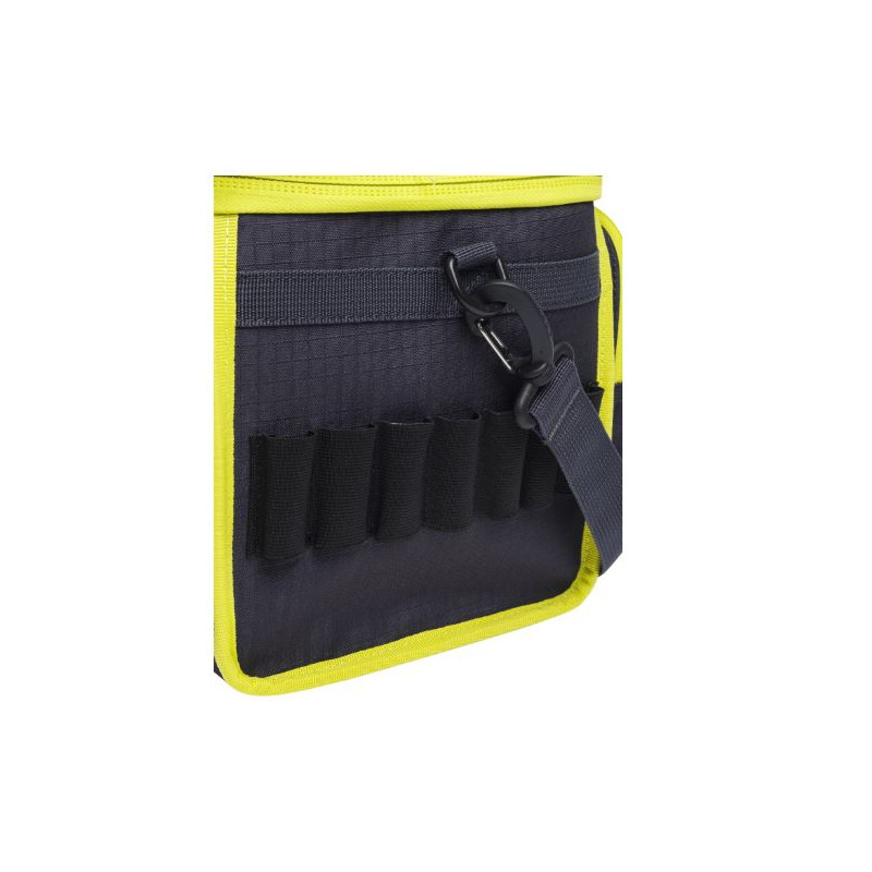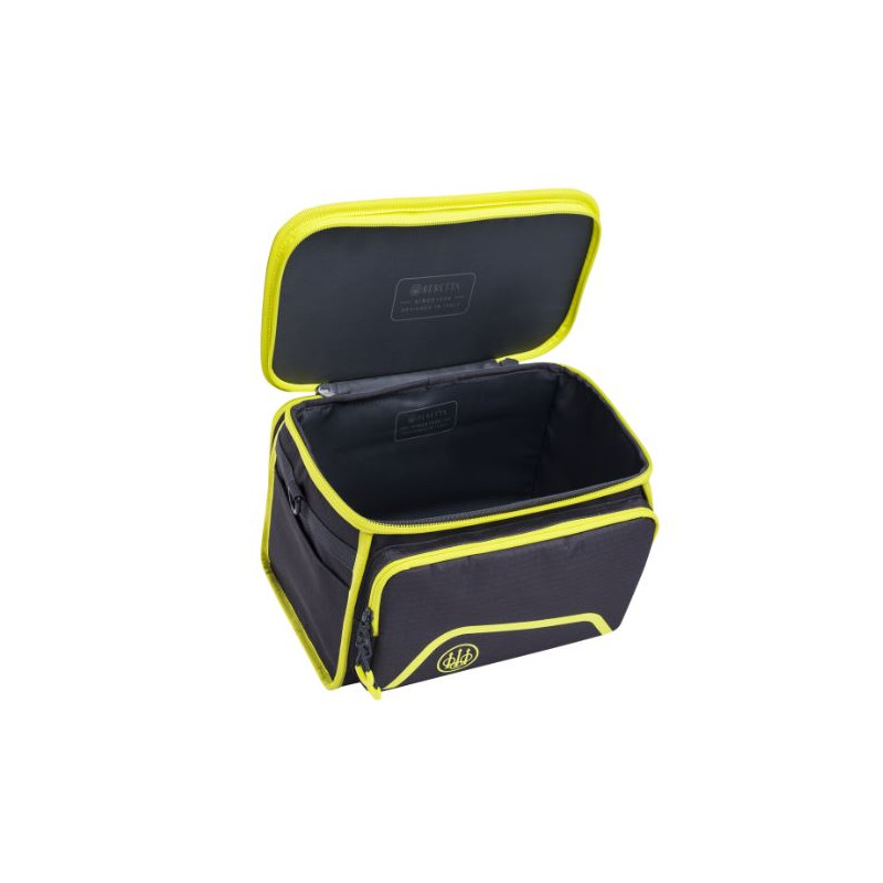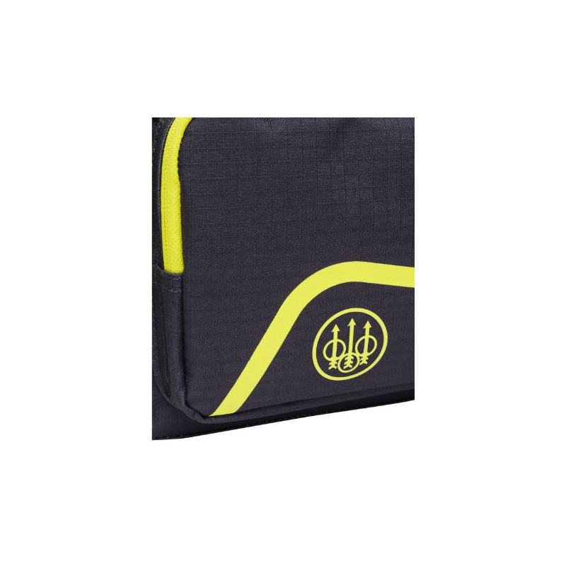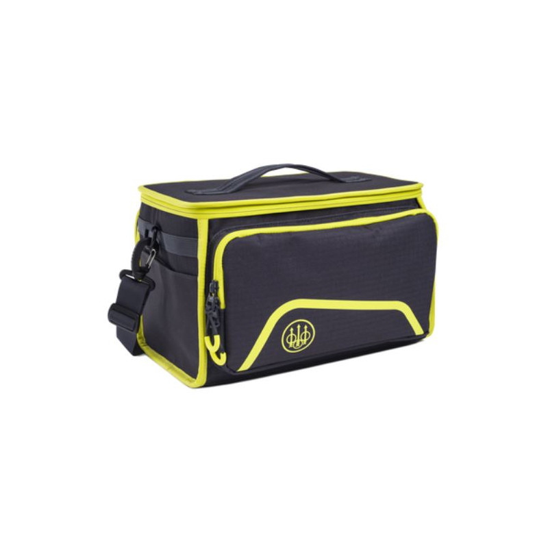 Borsa portacartucce Beretta blu e giallo modello Challenge art. BS522 T2262 09T7 chiudibile con zip. Borsa porta cartucce per contenere fino a a 6 scatole da 25 cartucce con 3 tasche esterne per strozzatori, tappi e altri accessori. Ideale da usare anche come porta oggetti per l'attività venatoria.
