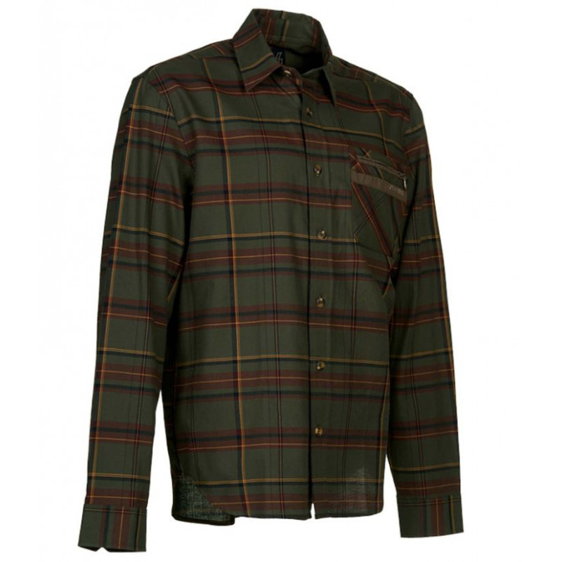 Camicia Univers mod. Lumber art. 94179 937. Camicia a manica lunga realizzata in leggero cotone a quadri verde, rosso e giallo. La camicia a fantasia scozzese dispone di una tasca sul petto chiudibile con zip. Ideale per l'attività venatoria ed il tempo libero.