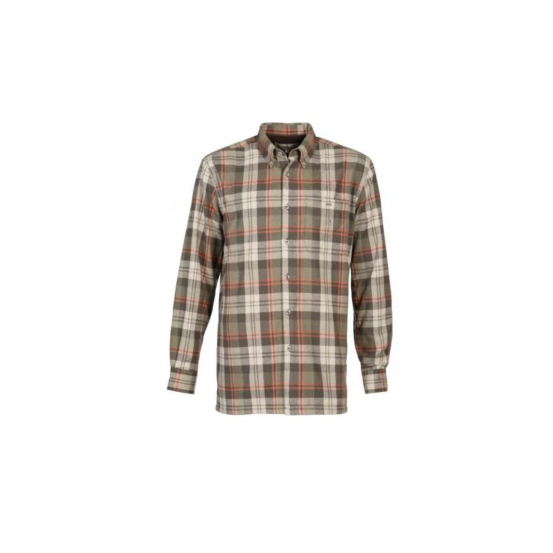 Camicia Percussion a quadri foderata internamente in pile. Camicia Percussion modello Inverness a quadri verde e arancione art.1676. Questa camicia è realizzata in 100% cotone, 100% poliestere, fodera in micropile da 130 g/m². Dispone di una tasca sul petto e colletto con bottoni. Perfetta per la stagione invernale. Ideale sia per l'attività venatoria che per il tempo libero.