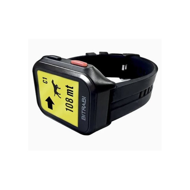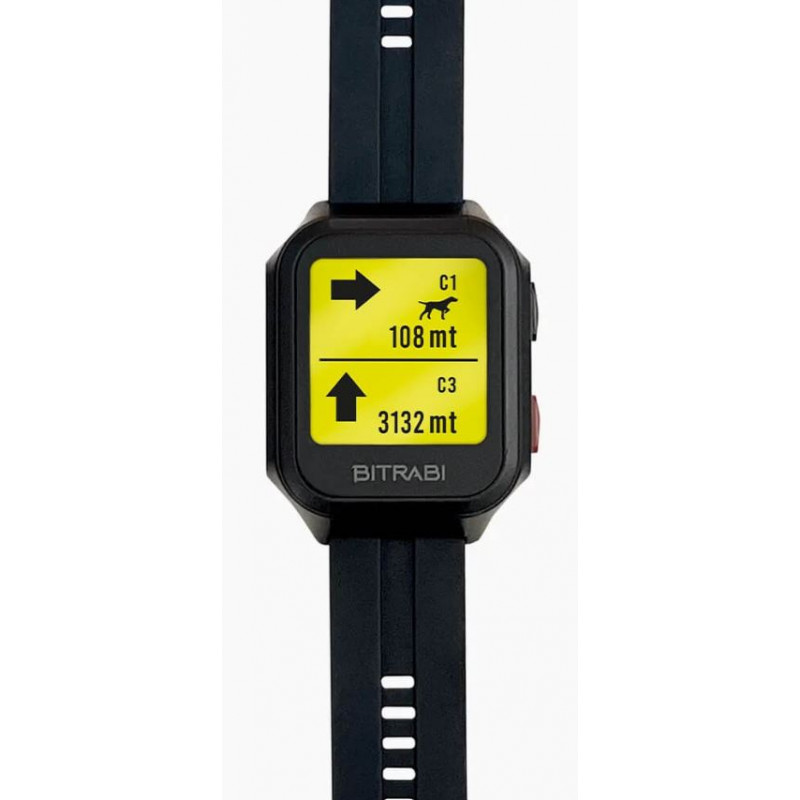 Orologio smartwatch Bitrabi modello HUNTER WATCH da collegare al palmare BS103 Legend o BS3000 Evomap. HUNTER WATCH di BITRABI è uno smartwatch semplice, intuitivo e con caratteri ben visibili ideale per persone di tutte le età. Mostra le informazioni essenziali come la direzione del cane e la sua distanza. Segnala quando il cane va in ferma e quando la rompe sia visivamente che tramite una pratica vibrazione al polso. Orologio intelligente realizzato per resistere a condizioni estreme a caccia o durante l’outdoor, il cinturino in silicone garantisce sempre un ottimo confort anche con severe condizioni climatiche. Ideale per tutti i cacciatori anche con problemi di udito: grazie al potente sistema di vibrazione di cui è dotato, l'HUNTER WATCH BITRABI ti informa silenziosamente ogni qualvolta il cane va in ferma o rompe la ferma (per la caccia con il cane da ferma) oppure se abbaia a fermo (per il cane da cinghiale).