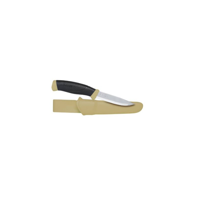 Coltello Morakniv modello Companion Heavy Duty. Il coltello da cintura dispone di una lama da 3,2 mm in acciaio inox Sandvik 12C27, che convince per la sua robustezza e affilatura. La guida sicura del coltello è garantita dall'impugnatura in gomma. Il manico e il fodero sono completamente in beige. Prodotto in Svezia. Perfetto da utilizzare per avventurieri sia nuovi che esperti durante la camminata, il campeggio o la caccia. Il coltello inoltre dispone di un pratico astuccio della sua stessa tonalità per un facile e sicuro trasporto.