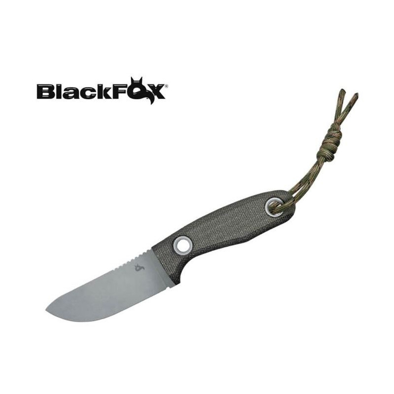 Coltello BlackFox a lama fissa mod. Viator art. BF-731 D2 MG. Coltello compatto, versatile,efficace e robusto. Questo coltello nasce dal design di Alfredo Doricchi. Coltello realizzato con lama drop-point modificata in acciaio D2 lunga 9 cm e spessa 4 mm.La bisellatura è di tipo fullflat, la finitura è satinata, il dorso della lama presenta una breve godronatura, utile a migliorare la presa del pollice per lavori di potenza e precisione. Guancioli in micarta. Completo di fodero in Kydex.