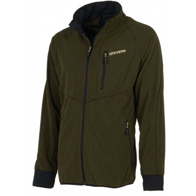 Felpa tutta zip Univers modello Sassolungo art. 94424 303. La felpa Univers è realizzata in un morbido pile verde da 240 grammi con trama quadrettata, leggero e caldo allo stesso tempo. Dispone di tre tasche frontali con zip di cui una sul petto chiudibile con zip. Perfetta da indossare per i primi freddi nel tempo libero oppure durante il periodo di caccia.