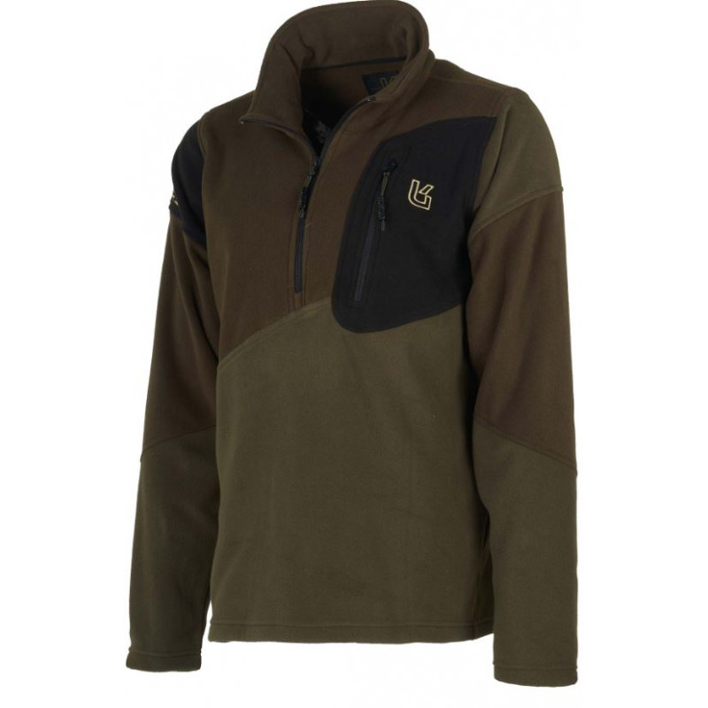 Lupetto Univers modello Puma art. 94408 388. Lupetto Univers mezza zip modello Puma realizzato in pile da 190 grammi particolarmente caldo e morbido indispensabile per la caccia e per ogni attività invernale all'aperto. Look caratterizzato da diversi tagli e contrasti di colore verde e marrone, una tasca al petto con zip.