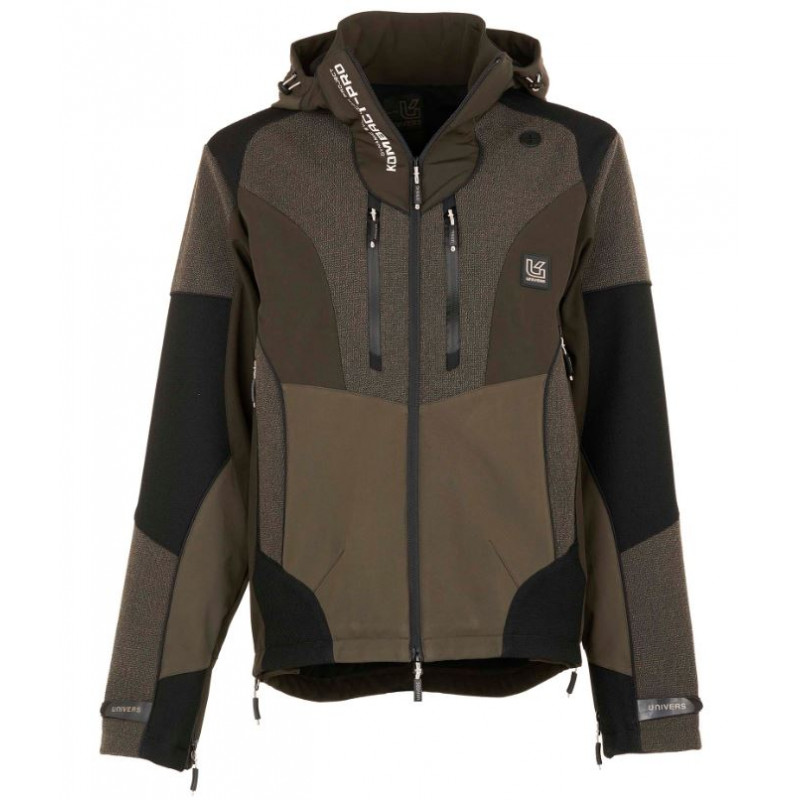 Giacca Univers verde modello KOMBACT PRO U-TEX art. 91199 388. Giacca da caccia Kombact Pro, impermeabile e traspirante, è realizzata in softhsell elasticizzato foderato in pile con membrana U-tex. Dispone di rinforzi in RK-TEX nei punti di maggiore usura, ha quattro comode tasche frontali con zip impermeabilizzate, tasca porta satellitare, utile tasca interna, carniere posteriore, zip laterali per un maggiore comfort, cappuccio staccabile. Questa giacca univers da caccia è adatta sia per la caccia che per tutte le attività all'aperto.