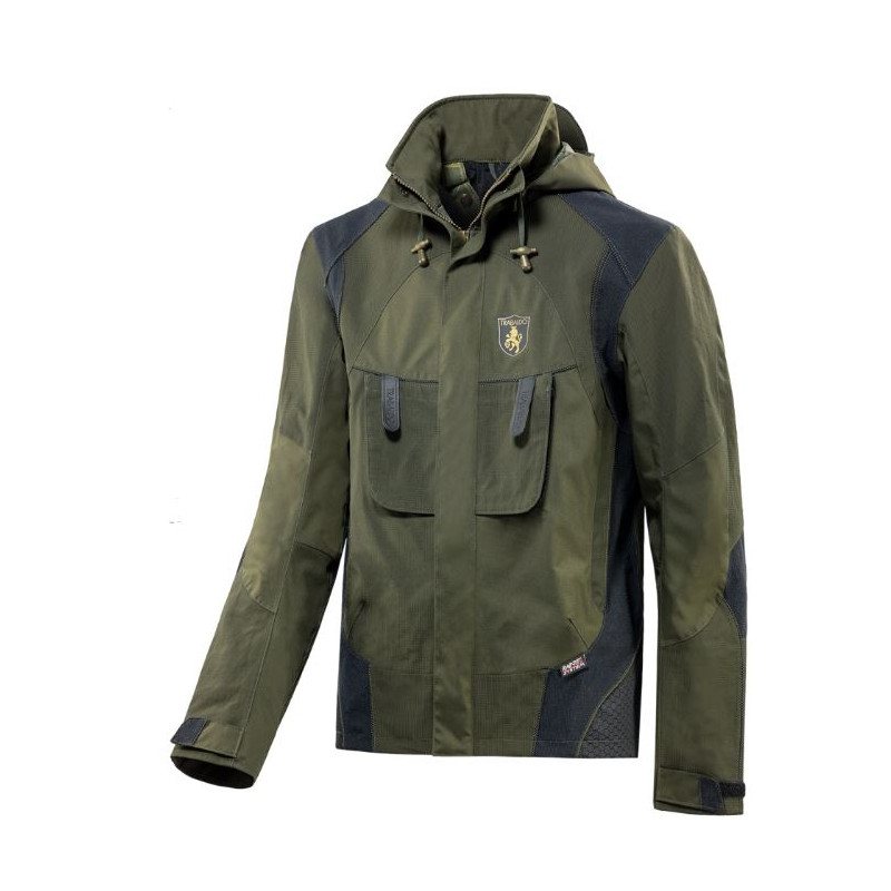 Giacca Trabaldo modello Genesis Evo nel colore verde, realizzata con tessuto base in CORDURA® Ripstop è impiegato nelle parti centrali del capo per conferire robustezza senza inficiare sui pesi, mentre a garanzia di una maggiore protezione su maniche e spalle troviamo il TITANIAL LIGHT. TITANIAL LIGHT è la versione alleggerita dell'ormai consolidato tessuto TITANIAL, che declina elevate resistenze alla lacerazione e allo snagging, ad una leggerezza senza precedenti. Gli inserti in KETRATEX STRETCH su spalle, gomiti, fianchi e schiena donano elasticità al capo, garantendo così una vestibilità asciutta senza rinunciare al confort. La giacca dispone di membrana RAINSYSTEM, laminata direttamente sui tessuti esterni tenendo il capo asciutto e impermeabilizzato le tasche esterne, limita l'assorbimento d'acqua evitando al capo di appesantirsi anche dopo un lungo stazionamento sotto la pioggia. GENESIS EVO incorpora tutti gli accorgimenti tipici delle nostre giacche top di gamma: doppi tasca porta palmare frontale, carniere a doppia entrata posteriore, cappuccio staccabile, doppia lampo interna per l'aggancio di un pile e bretella per il trasporto a spalla.