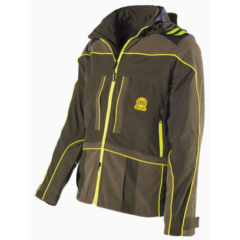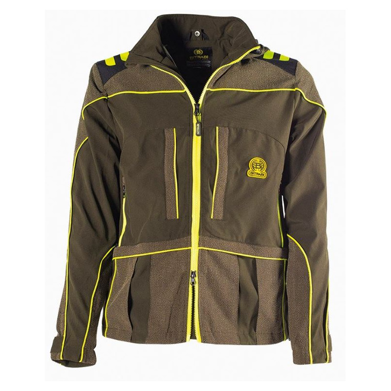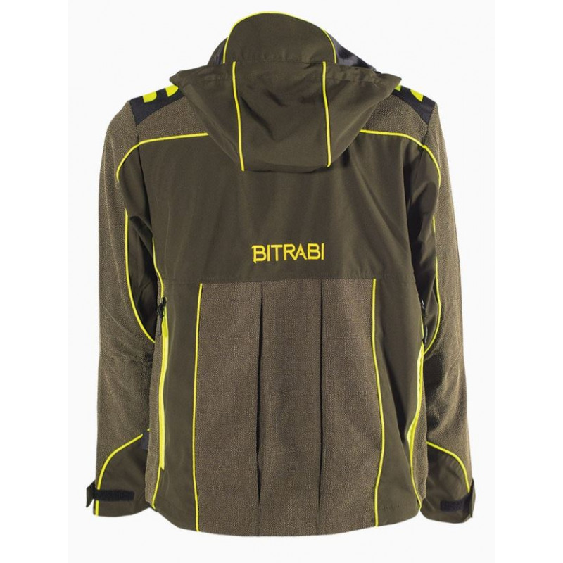 Giacca Bitrabi da caccia antispino e antistrappo modello Lion. La giacca da caccia BITRABI LION è realizzata in tessuto traspirante ed elasticizzato per agevolare i movimenti ed inserti in Aramide e Cordura per le parti più esposte. Dispone di numerose tasche: quelle verticali a scomparsa sono ampie e molto profonde nella parte anteriore, comodissime come porta palmare e porta oggetti; le tasche orizzontali anteriori basse sono molto capienti e utili per contenere cartucce o accessori di maggiori utilizzo. Pratiche le due tasche laterali che fungono da "scalda mani" e molto apprezzate durante gli appostamenti nella caccia di selezione e le lunghe poste nella caccia al cinghiale in battuta. La giacca da caccia BITRABI LION è dotata anche di due tasche interne porta documenti e porta cellulare. La robusta cerniera frontale forte e resistente YKK in giallo fluo ha un doppio cursore per garantire maggiore comfort e libertà di movimento. Carniere sulla parte posteriore molto capiente e dotato di cerniere YKK facilmente apribili.
