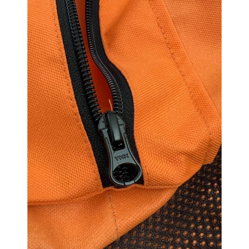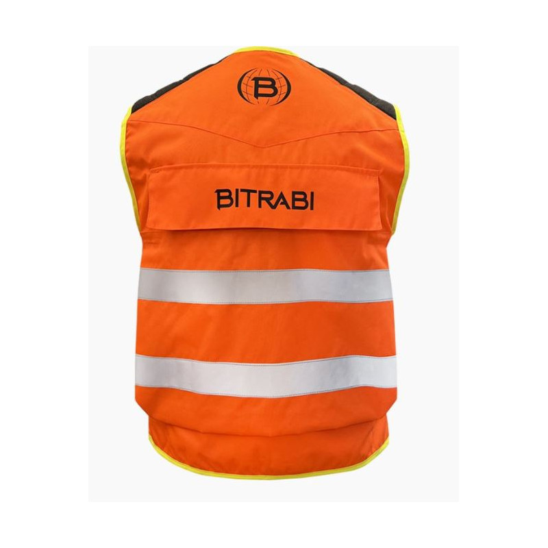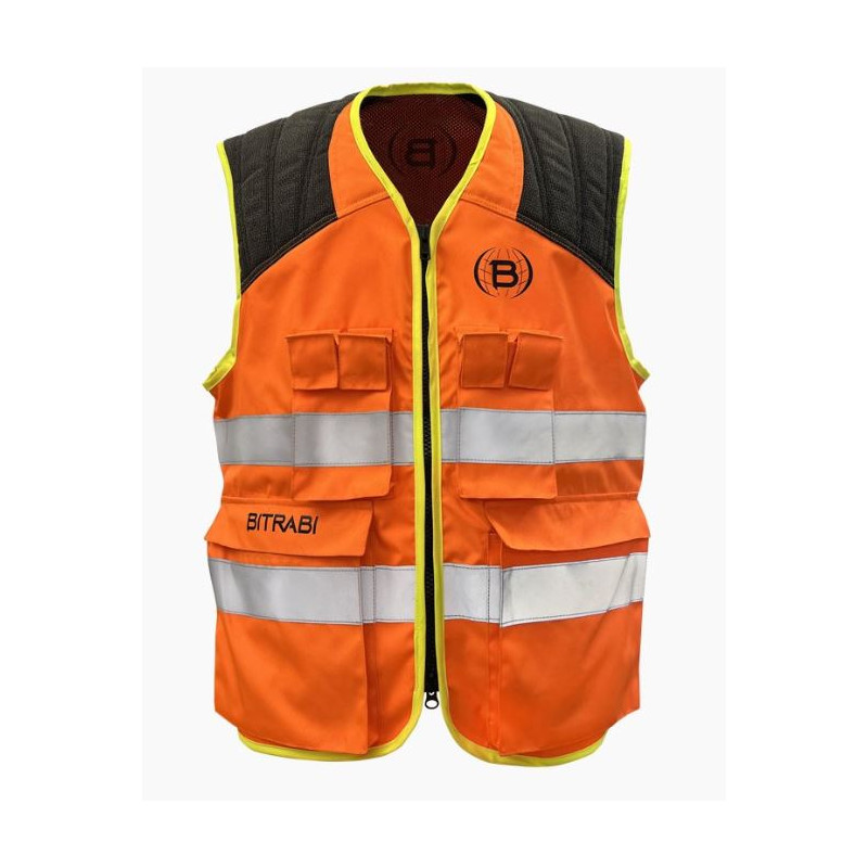 Gilet Bitrabi modello SICUR MAN da caccia al cinghiale alta visibilità. BITRABI SICUR MAN è un gilet arancione da caccia realizzato in cordura antistrappo. Il gilet dispone di 7 tasche per poter contenere tutti gli accessori: nella parte anteriore 2 tasche a soffietto e 2 tasche esterne superiori, 2 anteriori interne ed un'ampia carniera posteriore posizionata sulla parte centrale della schiena. Le due tasche superiori esterne sono state create per inserire radio, palmare satellitare o cellulari; le due ampie tasche esterne inferiori per poter portare comodamente vari oggetti e sono dotate, inoltre, di un sistema interno elasticizzato porta cartucce. Le due tasche interne, che sono ovviamente le più protette, risultano ideali per essere utilizzate come porta documenti o accessori delicati. L'ampia sacca posteriore, invece, è posizionata in modo che anche qualora fosse utilizzata per portare oggetti pesanti, risulti molto pratica e confortevole.