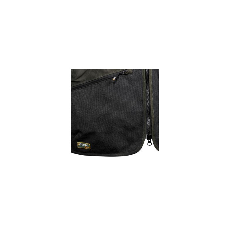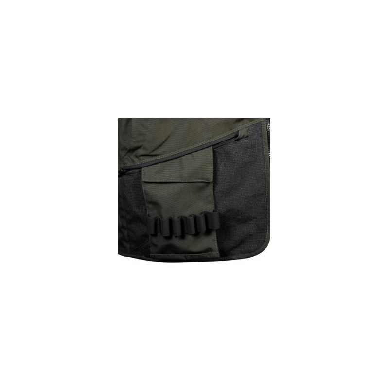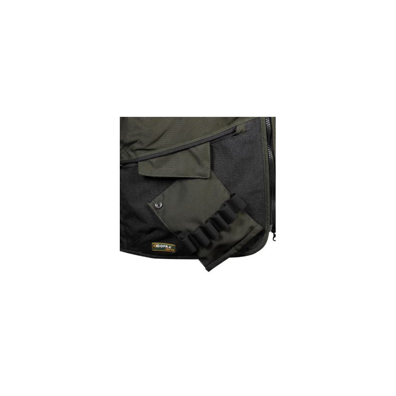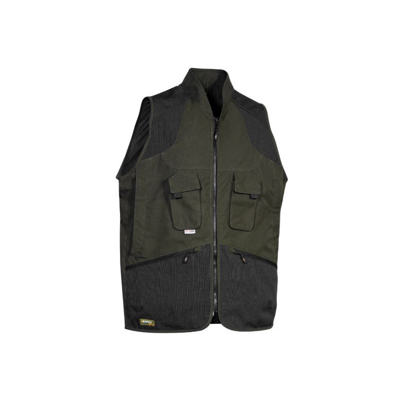 Gilet Cofra verde modello Wulfen art. V324-0-03. Gilet da caccia realizzato in 100% poliestere + membrana COFRA-TEX. Questo gilet dispone di 1 tasca interna con zip, 1 tasca interna portacellulare, 2 ampie tasche anteriori con zip, 2 tasche sul fondo con zip e con cartuccera interna estraibile e removibile, 1 cartuccera per fucile, 1 cartuccera per carabina, antispino e antirovo, ampio tascone posteriore impermeabile chiuso con zip, apertura centrale con zip a doppio cursore, D-Ring, fodera in rete per una migliore traspirabilità, 2 tasche sul petto porta radio, inserti antiabrasione sulle spalle, tessuto antiabrasione nei punti di maggior sollecitazione, sistema di ventilazione posteriore.