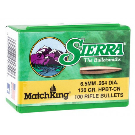 Ogive Sierra MatchKing per ricarica munizioni per Carabina calibro 6,5 mm, peso 130 grani. Confezione da 100 pz. Art. #1729 SIERRA.