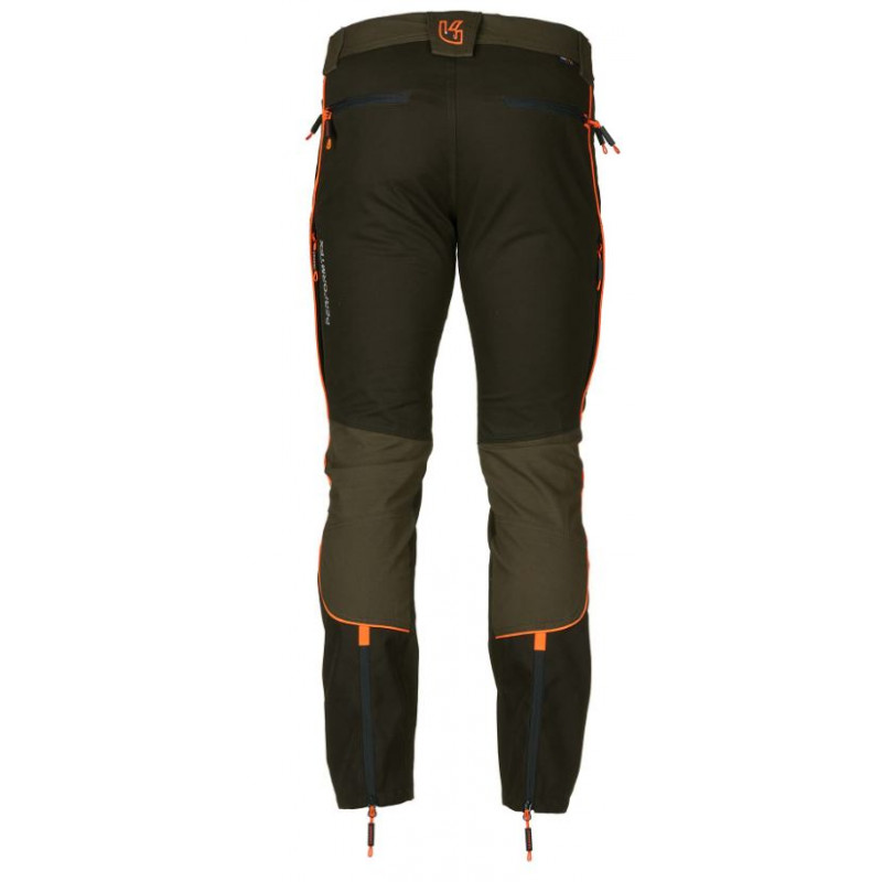 Pantalone da caccia estivo Univers modello Bosco art.92492 392 con rifiniture arancio fluo. Questo pantalone leggero è realizzato in resistente canvas elasticizzato e idrorepellent con protezione anti strappo in Cordura® sulla gambe per una protezione aggiuntiva. Questo pantalone dispone di due tasche frontali con zip, aperture laterali per l'aerazione, due tasche posteriori con zip, zip a fondo gamba, elastico in vita. Ideale per uso venatorio o per il tempo libero dove è richiesto abbigliamento tecnico.