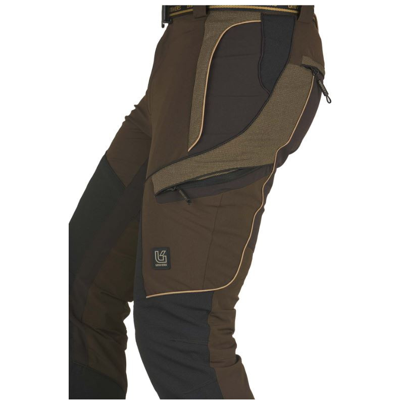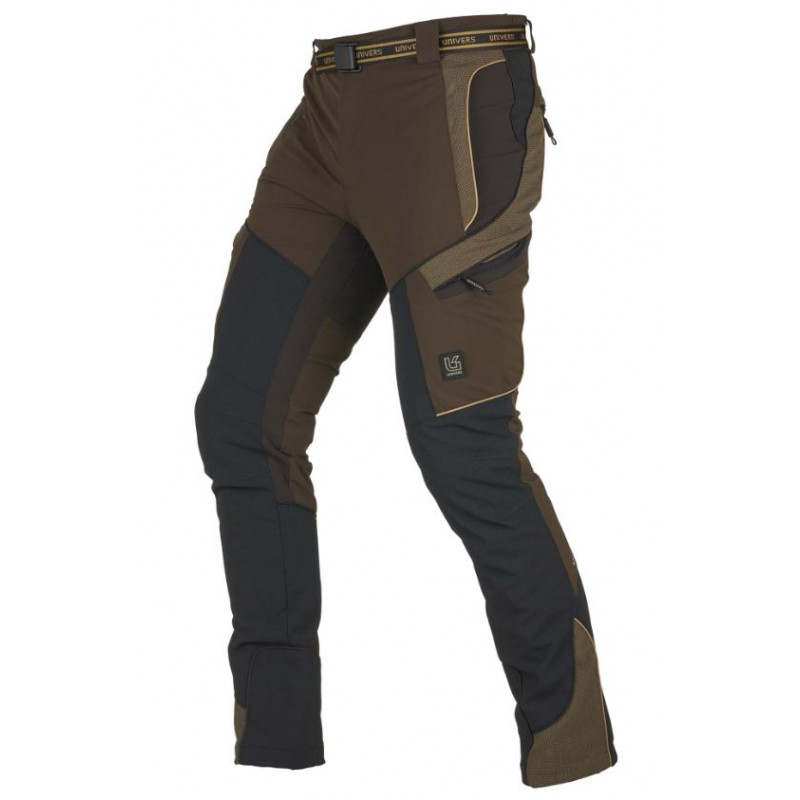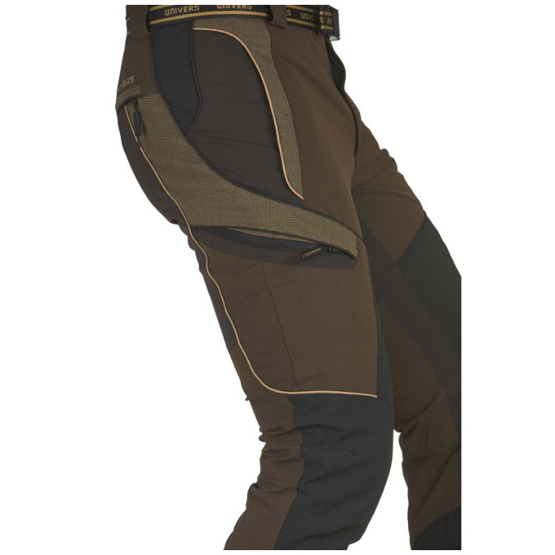 Pantalone da caccia Univers modello Cervo U-Tex art.92705 402. Pantalone da caccia modello Cervo, comodo e funzionale grazie al robusto tessuto in nylon elasticizzato che agevola i movimenti, la membrana U-Tex garantisce l’impermeabilità e traspirabilità. Realizzato con rinforzi in tessuto DR-Tex sulla gamba. Dspone di due tasche frontali con zip e pattina, due capienti tasche laterali con zip, due tasche posteriori con pattina e zip, elastico in vita. Inoltre dispone di pratica cintura removibile.