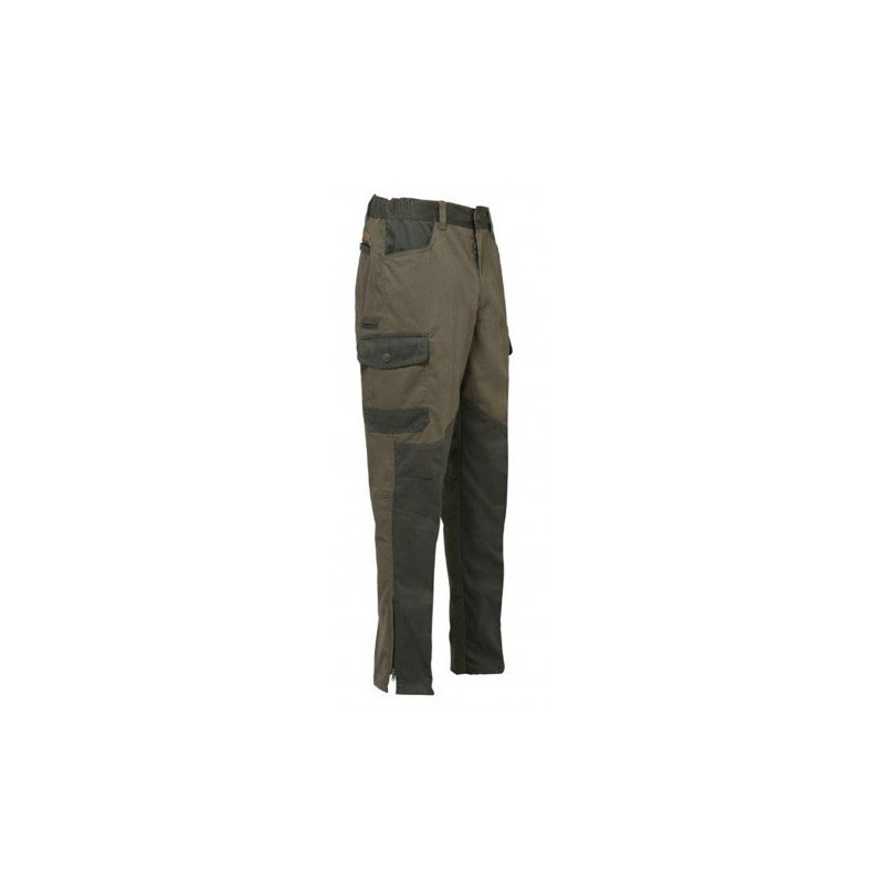 Pantaloni da caccia Percussion mod.1027 nel colore verde ed inserti marrone scuro. Questo pantalone è leggero, silenzioso e comodo da indossare. E' realizzato in 65% poliestere e 35% cotone e materiale tecnico impermeabile. Pantalone da caccia con cinura antiscivolo elasticizzata in vita con chiusura a bottone per una vestibilità ottima. I pantaloni presentano 6 tasche di cui una portacoltello e fondo gamba con chiusura lampo. Perfetto da utilizzare anche per il tempo libero.