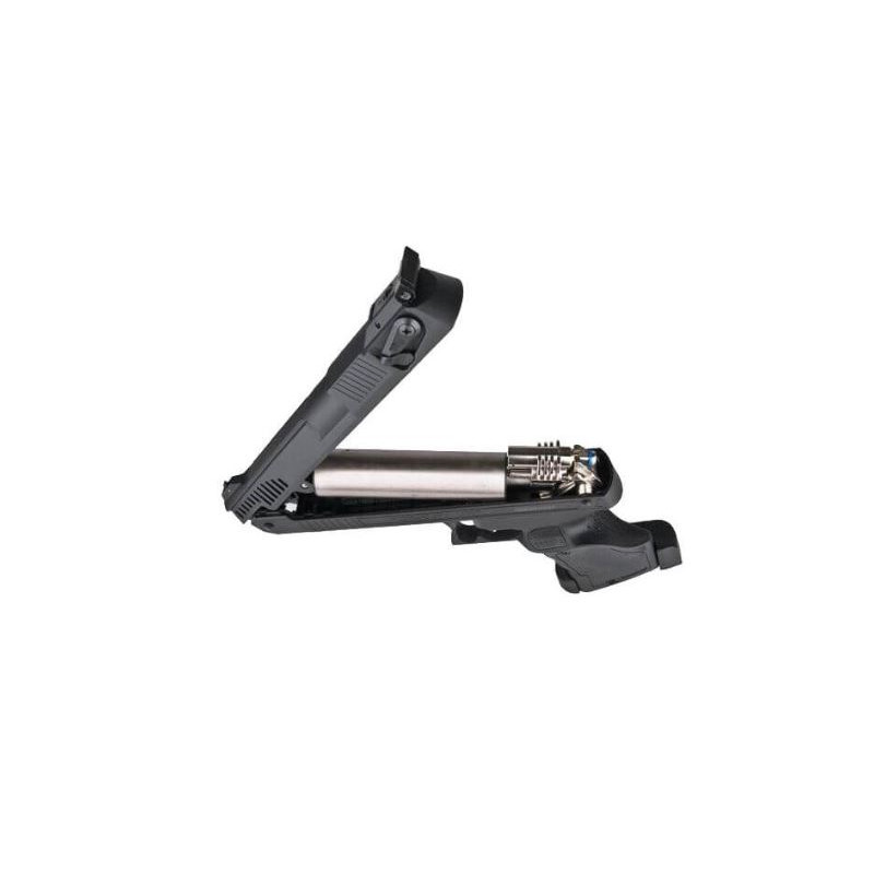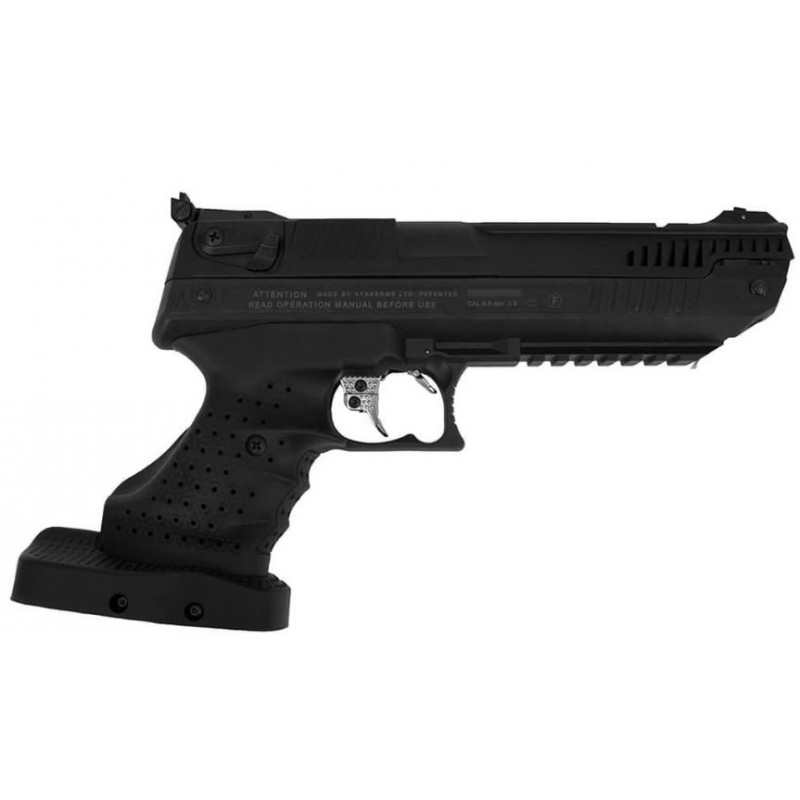 Pistola PCA a colpo singolo. Pistola aria compressa caricata tramite uno stantuffo in un piccolo serbatoio. Pistola aria compressa con scatto leggerissimo e molto netto. L’impugnatura è di tipo anatomico regolabile, e la costruzione, in tecno polimero, le conferisce un peso adeguato ad ottenere un’ottima stabilità di tiro.Il corpo della pistola è dotato di due slitte weaver per poter montare gli accessori com ottiche red-dot torce o laser. L’estetica ricorda in maniera piacevole quella di una pistola semiautomatica.