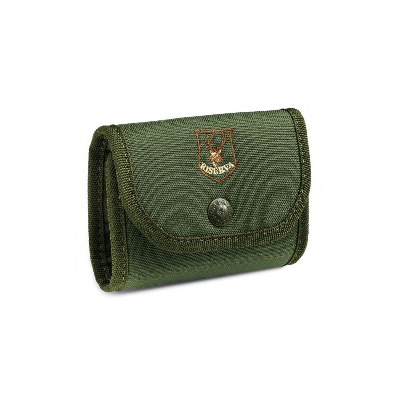 Giberna portacolpi per carabina Riserva art.R2153. Portacolpi realizzato in cordura naturelle. Portacolpi in cordura naturelle chiuso ai lati, dispone di 10 celle multicalibro, inserti elastici per la tenuta dei colpi. Logo Riserva ricamato sulla parte frontale. Chiusura con bottone automatico.