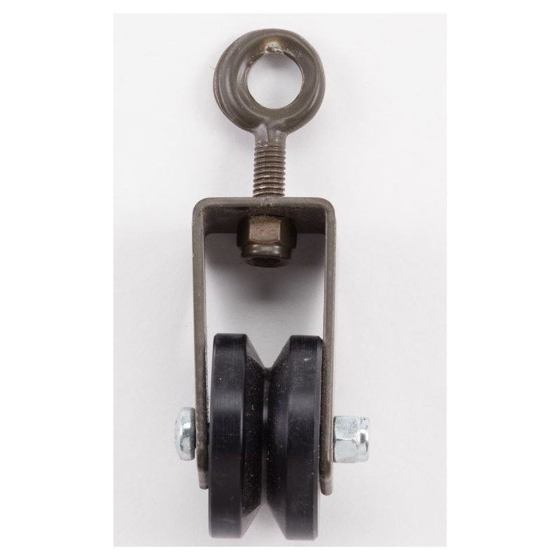 Carrucola snodata regolabile per aste colombaccio realizzato in resistente metallo di colore verde e PVC con cuscinetto in ottone.