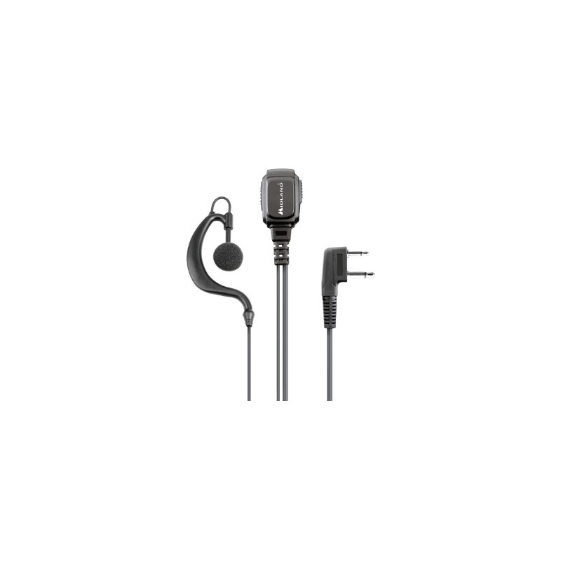 Microfono auricolare Midland con connettore ad L, selettore VOX/PTT e cavo spiralato con presa 2 PIN.