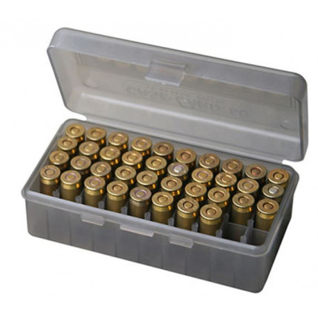 Scatola porta munizioni per pistola con coperchio apribile. La scatola portacartucce è chiudibile con cerniera meccanica per proteggere il contenuto da eventuali perdite.