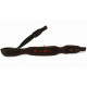 Tracolla Riserva sagomata per carabina marrone mod: R2056631. La tracolla è realizzata in vera pelle con scritta "RISERVA" arancione ad alta visibilità. La tracolla è imbottita e regolabile a piacimento ed è lunga 95 cm.