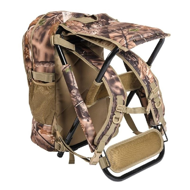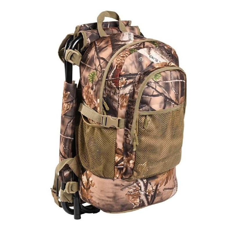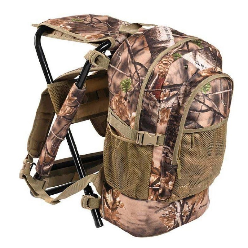 Zaino con sgabello camouflage. Zaino 20 litri con sgabello integrato con scomparto principale e tasche esterne a cerniera e in rete lateralmente. Zaino idrorepellente con seduta integrata, che unisce robustezza e comfort. Seduta imbottita, spallacci e rinforzo posteriore per un maggiore comfort, 2 ampie tasche con cerniera. 3 tasche esterne in rete, 2 tasche interne in rete. Altezza seduta 50 cm, peso 2,4 kg. Dimensione: 22x29x46 cm. Colore: cachi e Camo forest Camo reeds. Ideale da utilizzare durante l'attività venatoria o per attività di outdoor nel tempo libero.